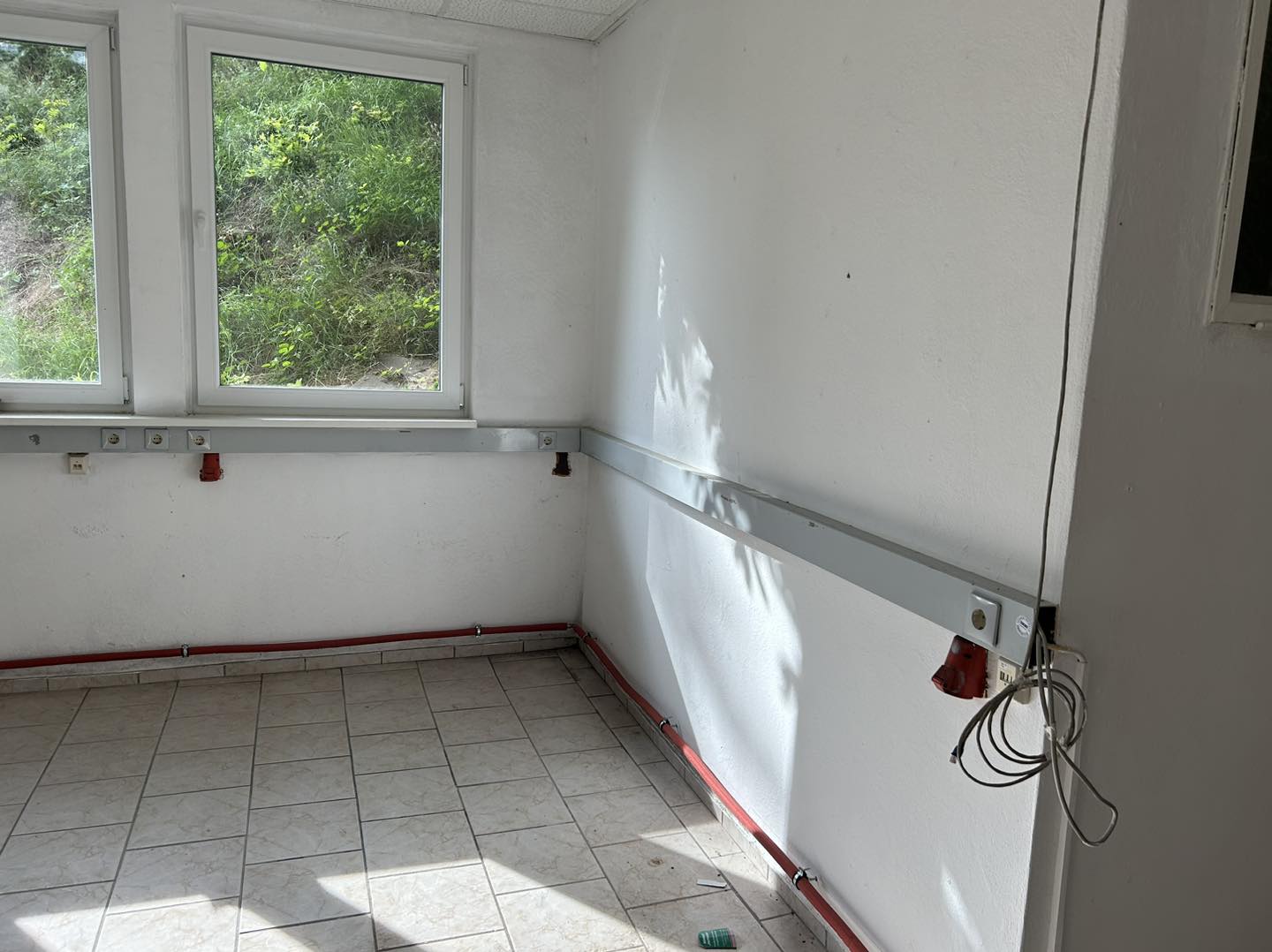 Das Gebäude verfügt über eine große Fahrzeughalle und einen Anbau mit mehreren Räumlichkeiten.