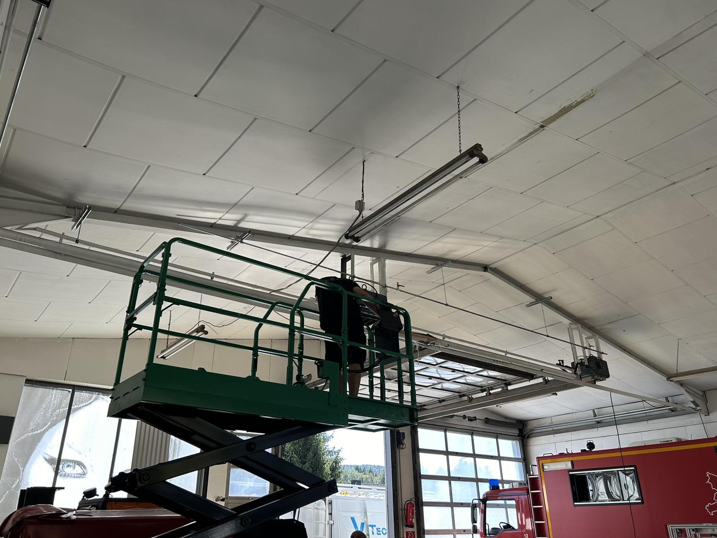 Die alten Hallentore wurden gegen zwei neue Hallentore getauscht. Die beiden 4m x 4m großen Sektionaltore verfügen über einen elektrischen Antrieb mit Fernbedienung. Ein Tor hat zusätzlich eine Schlupftür.