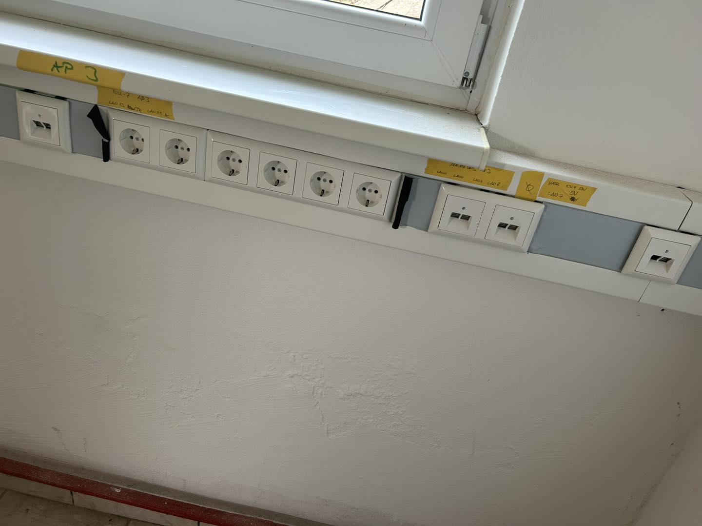 Alle neuen Steckdosen wurden durch eine Fachfirma gesetzt, auch alle Netzwerkdosen haben jetzt Abdeckungen erhalten.