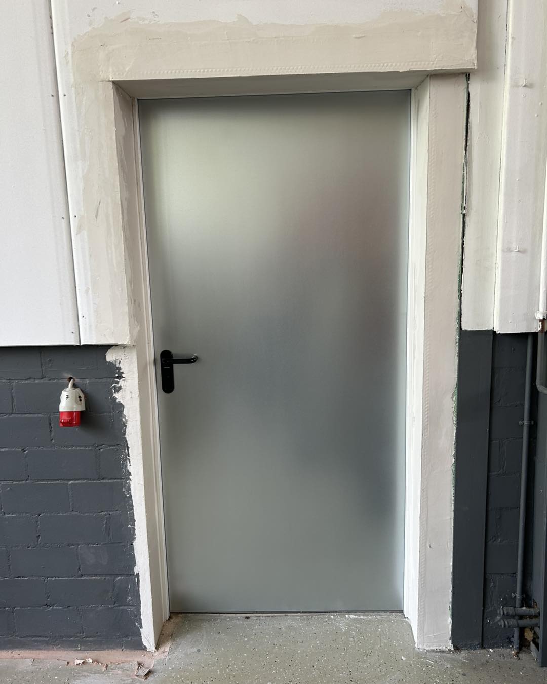 Durch eine Fachfirma wurde eine Tür zwischen dem Funktionsgebäude und der Fahrzeughalle eingebaut